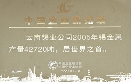2005年,云錫錫產(chǎn)量達42720噸,躍居世界錫行業(yè)之首。